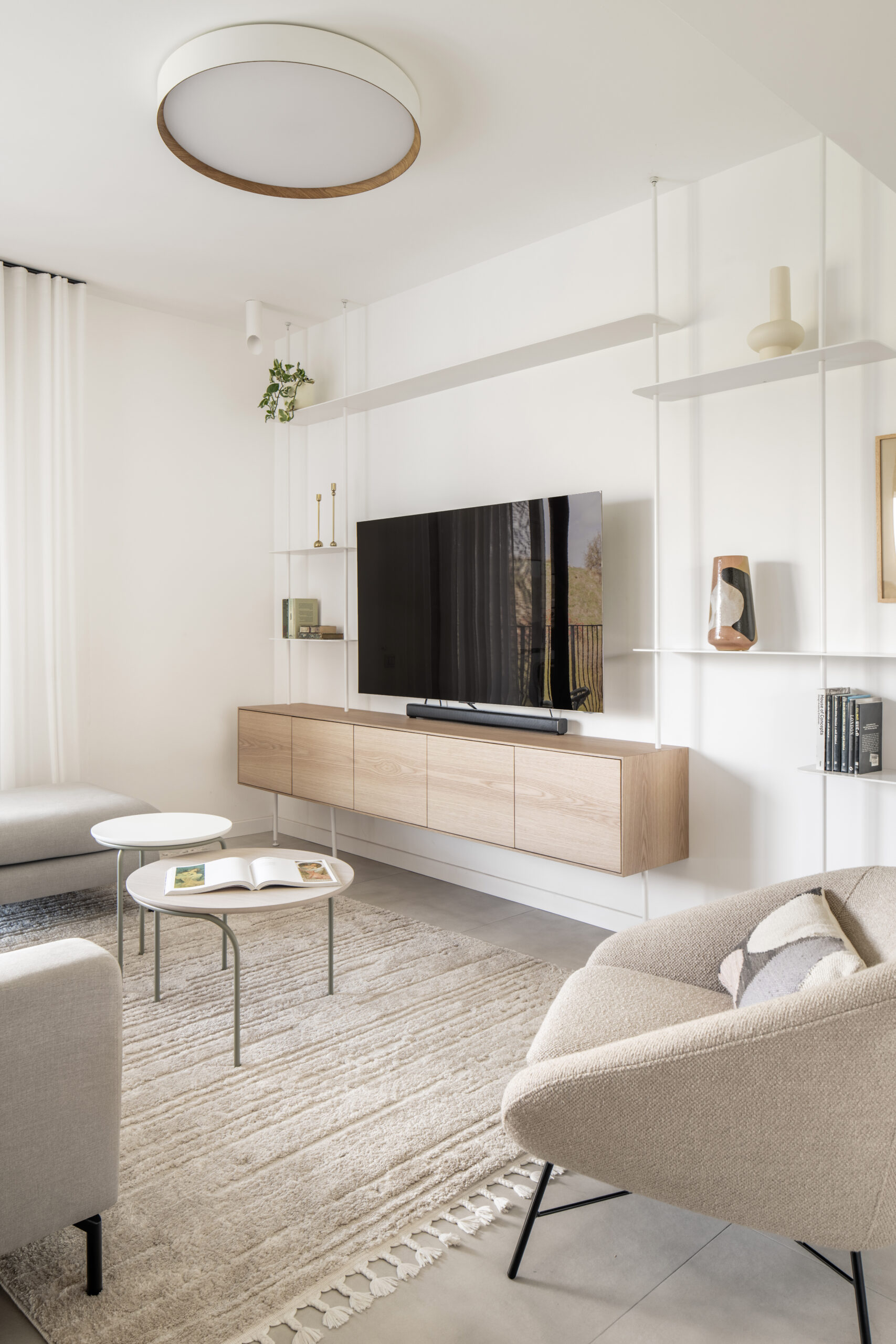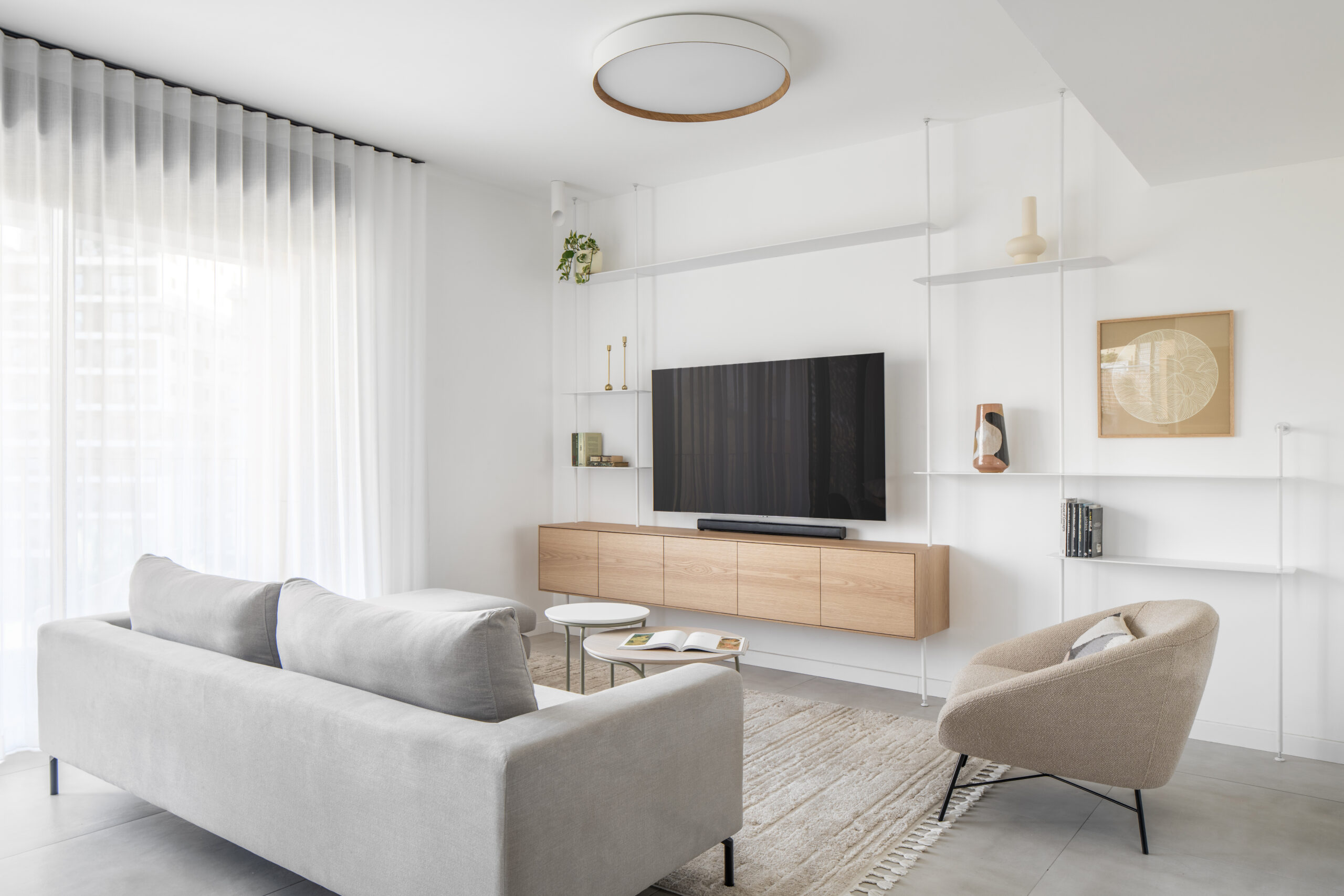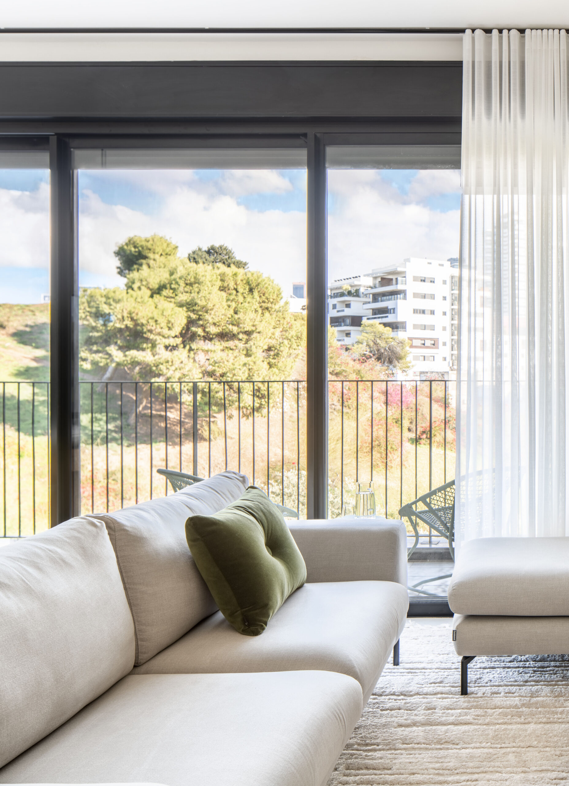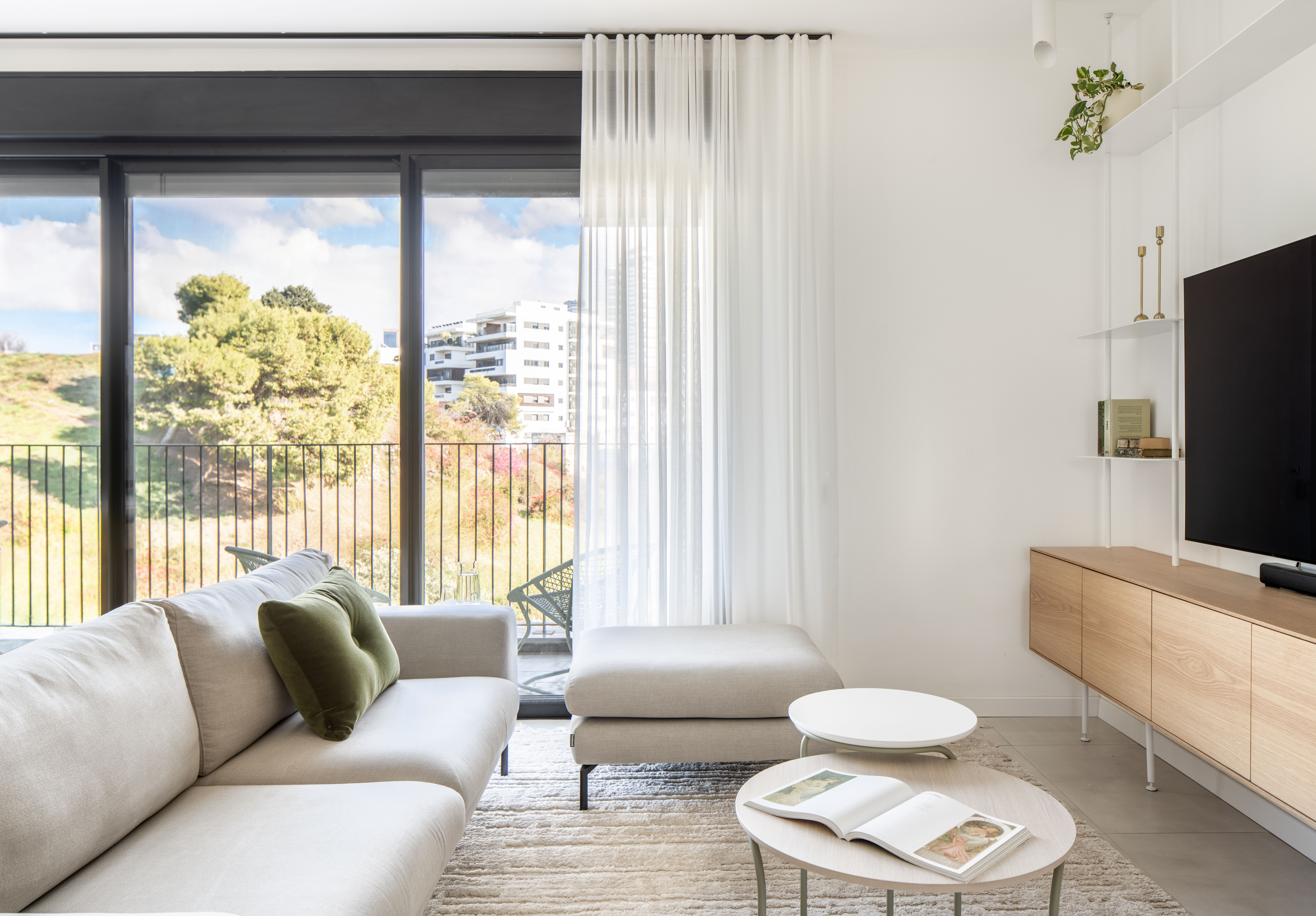 את הנוף שנשקף מכל חלון בבית הכנסנו פנימה והקפדנו לא להתחרות בו יותר מידי. בחרנו בגוונים טבעיים ובהירים והשלמנו עם אקססוריז וטקסטיל עדין ליצירת עיצוב "על זמני" ומזמין.