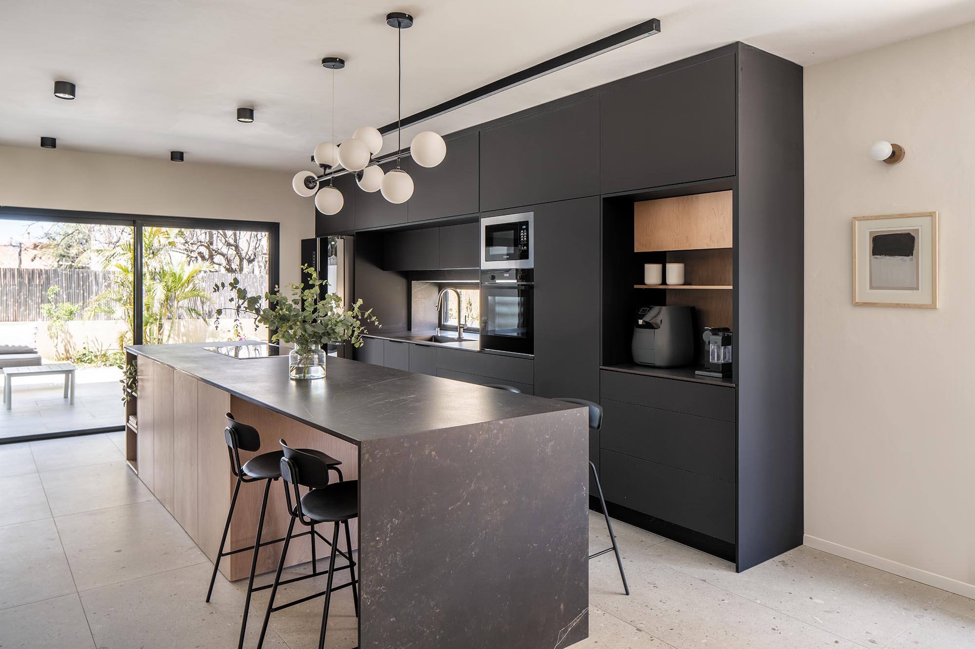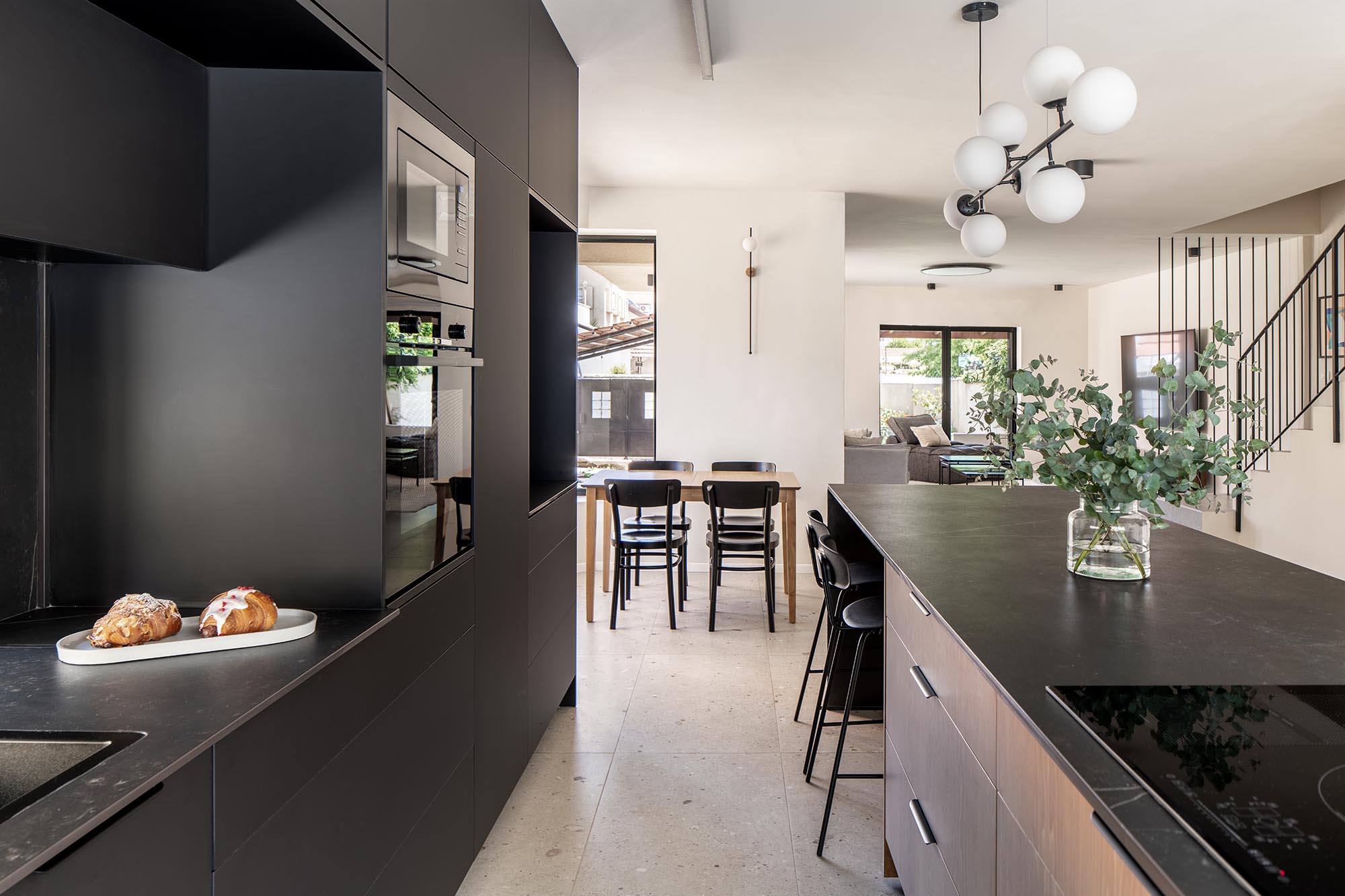 כל פינה וכל פרט קיבל התייחסות ופתרון עיצובי. תכננו נגרות בכל הבית כך שכל סנטימטר תוכנן וכל מפגש בין חומרים היה הזדמנות ליצירה.